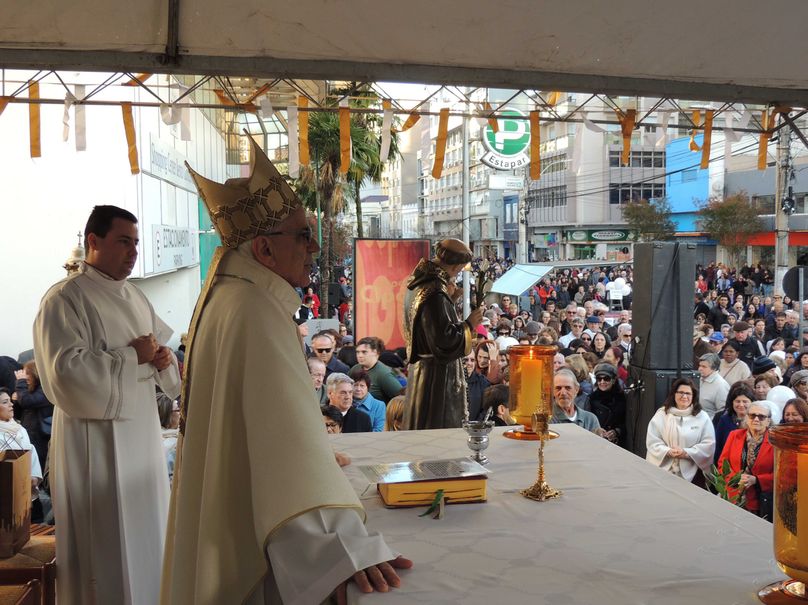 15h: Missa Solene Campal, seguida de Procissão com Santo Antônio, pelas ruas centrais (Bispo auxiliar de Porto Alegre, Dom Leomar Antônio Brustolin)