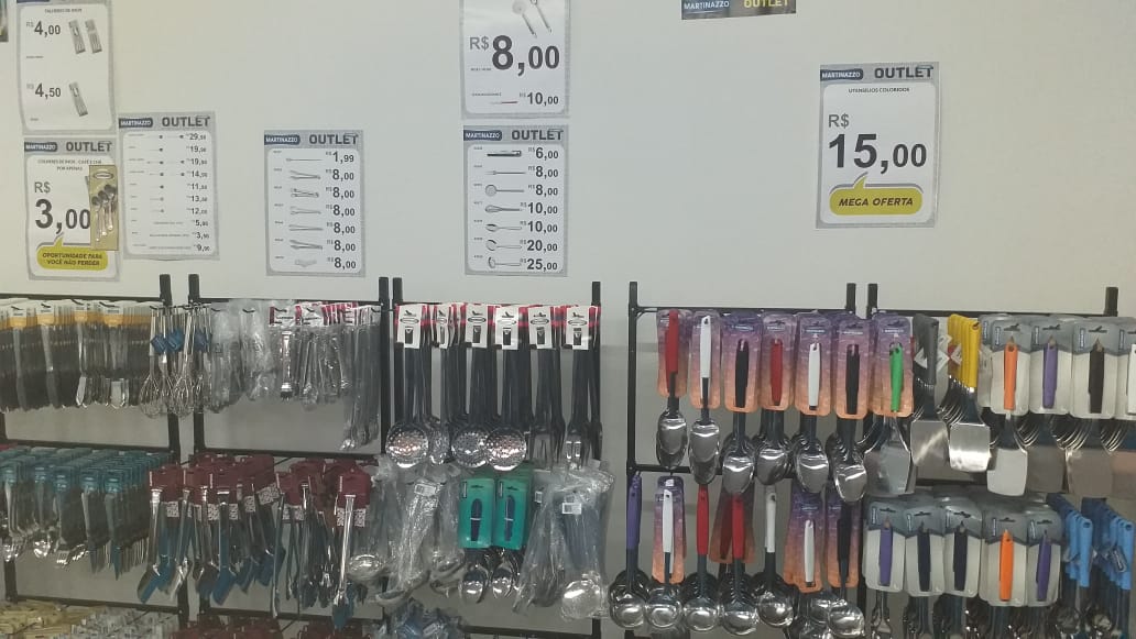 É possível encontrar diversos utensílios como, conjunto de talheres, frigideiras, lixeiras e afins, e a partir de R$ 2,00 com condições especiais e facilidade nas formas de pagamento.