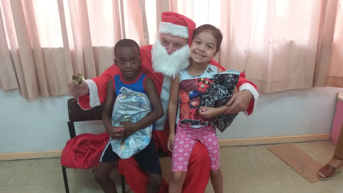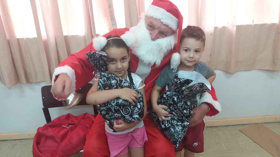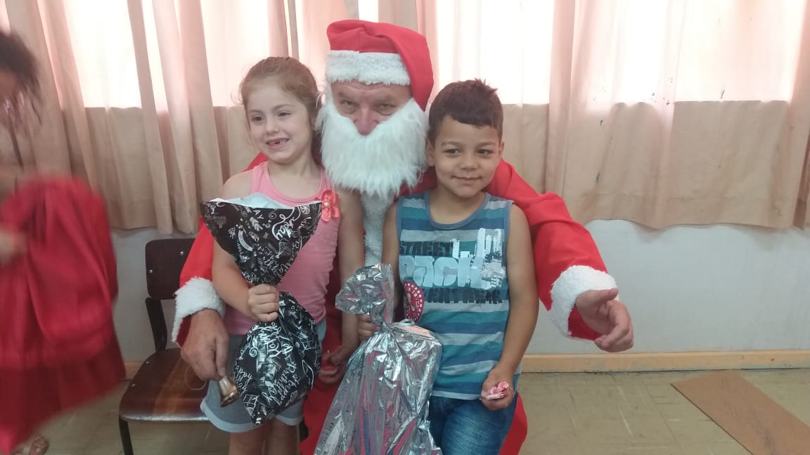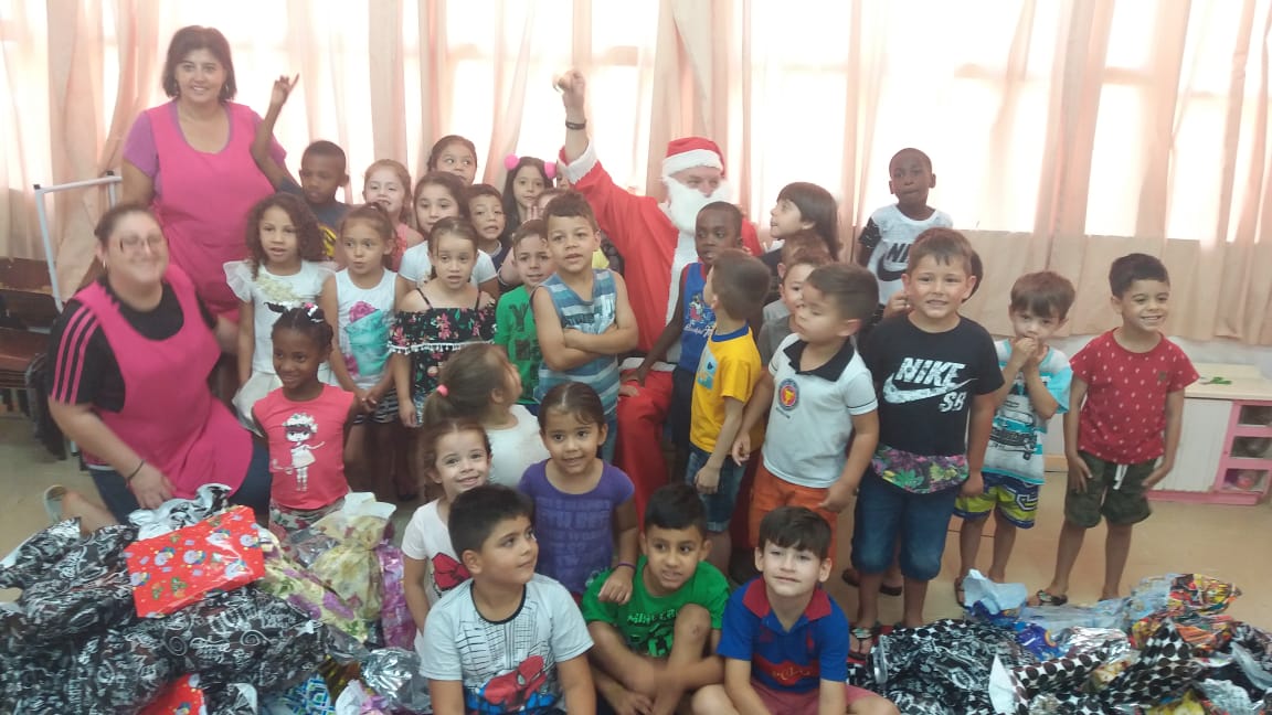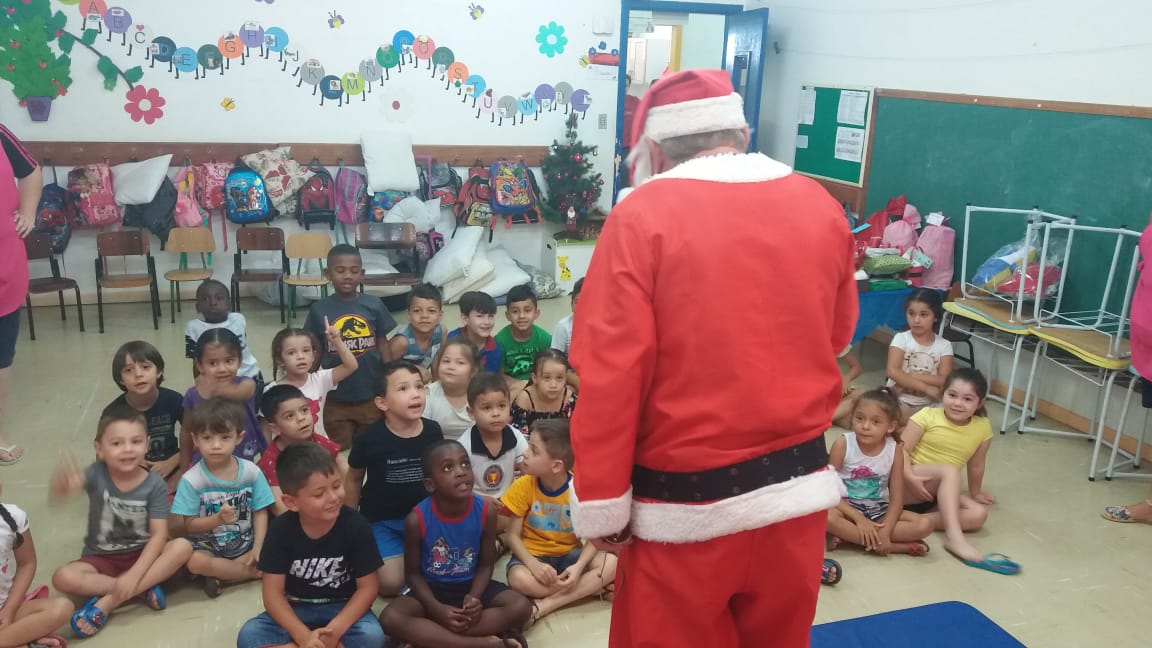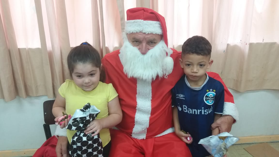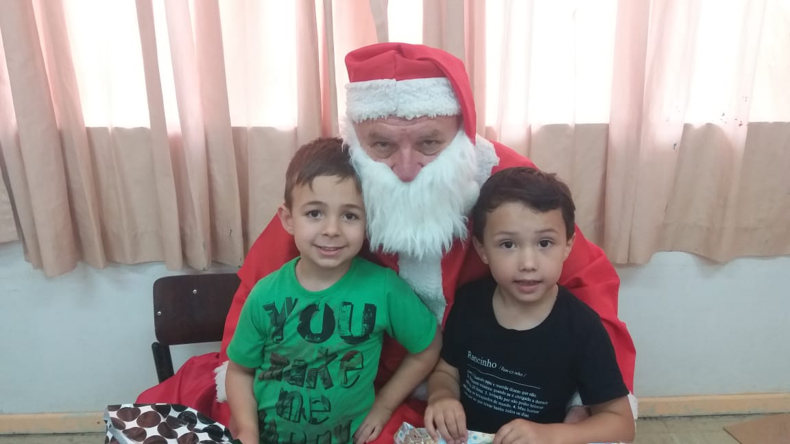 A equipe da Rádio Amizade, que levou o papai noel junto para fazer a entrega oficial dos brinquedos, foi recepcionada por 50 crianças de 5 anos juntamente com as atendentes e as diretoras Tereza e Andreia.