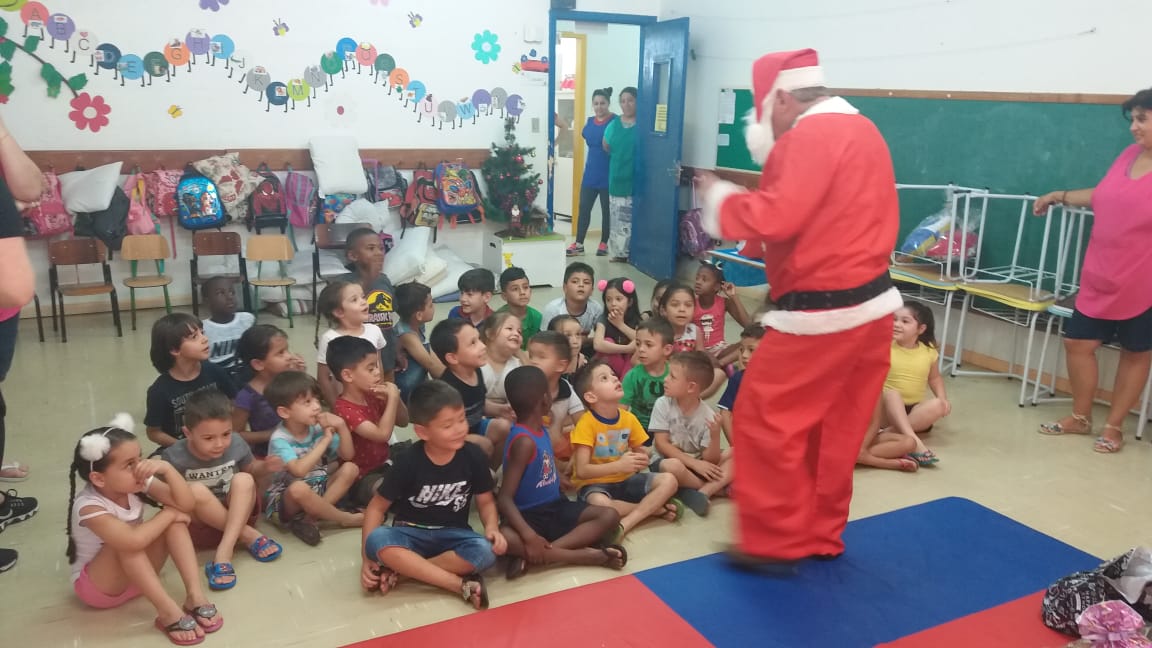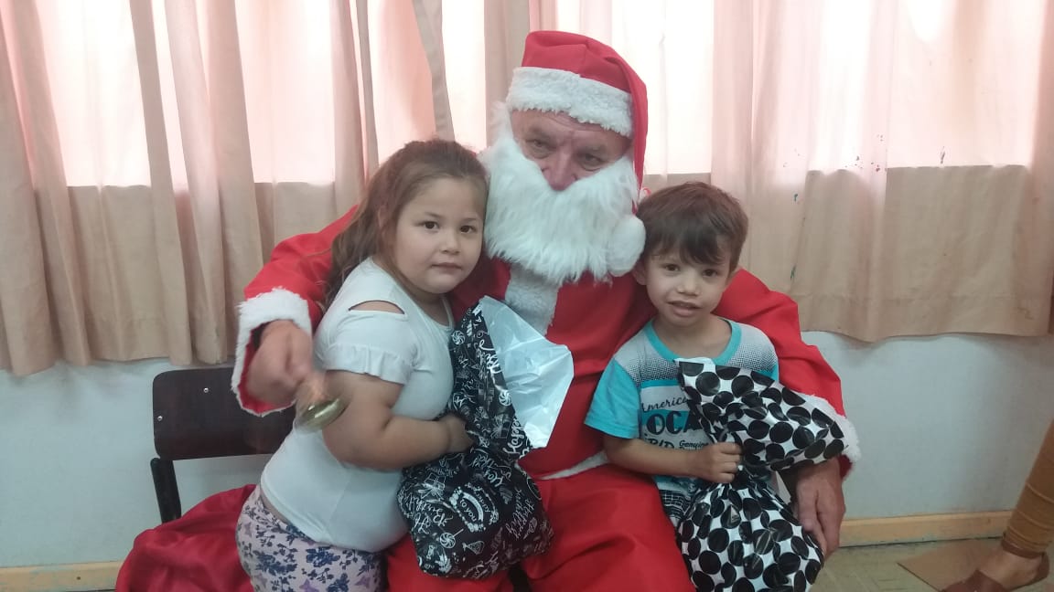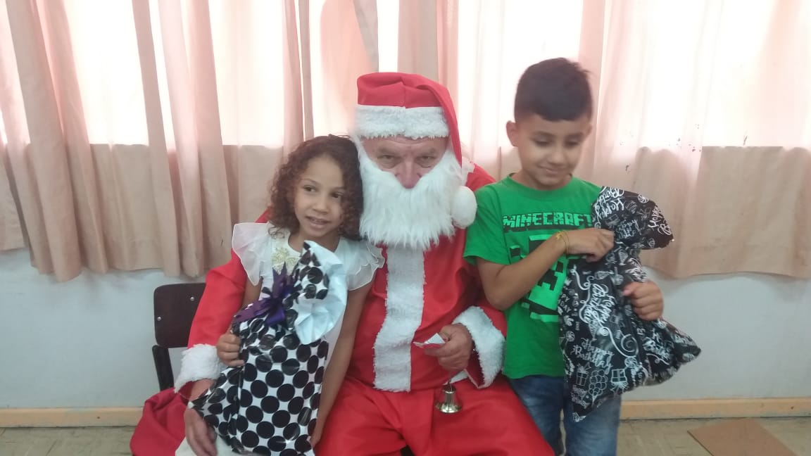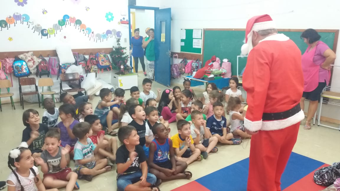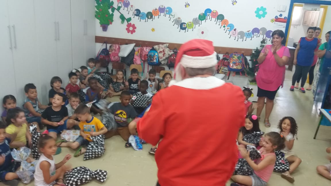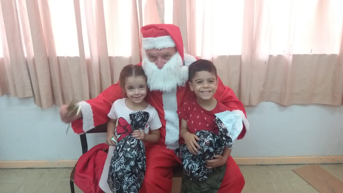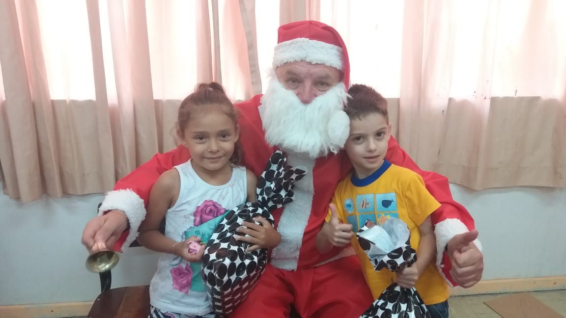 A equipe da Rádio Amizade, que levou o papai noel junto para fazer a entrega oficial dos brinquedos, foi recepcionada por 50 crianças de 5 anos juntamente com as atendentes e as diretoras Tereza e Andreia.