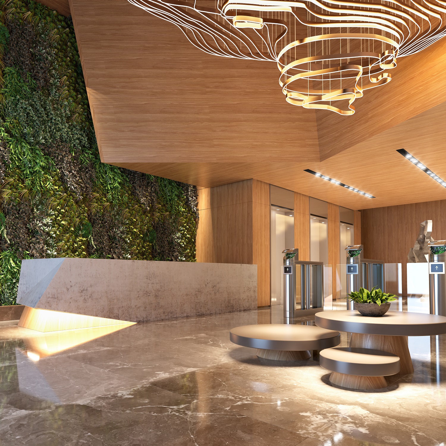 Os escritórios ficam no segundo e terceiro pavimentos. Com vidros espelhados, as salas garantem privacidade para quem trabalha no local, ao mesmo tempo que permitem a apreciação do movimento externo. Para dar suporte, uma ampla estrutura funcional agrega conforto com espaços inéditos compartilhados. Office Boxes foram projetados para receber fornecedores e realizar reuniões rápidas, sendo uma extensão do escritório. A área inclui uma sala de espera decorada. Os condôminos têm, ainda, quatro Office Lounges para recepcionar clientes, apresentar projetos e fazer reuniões sem comprometer o espaço de seus escritórios. O agendamento é todo feito por aplicativo. Da mesma maneira, também é possível ter acesso às câmeras de videomonitoramento. A entrada ao local se dá por um luxuoso lobby com três elevadores de alta performance e segurança 24 horas. Moderno e seguro, prevê sistema de controle de acesso para colaboradores, fornecedores e clientes.