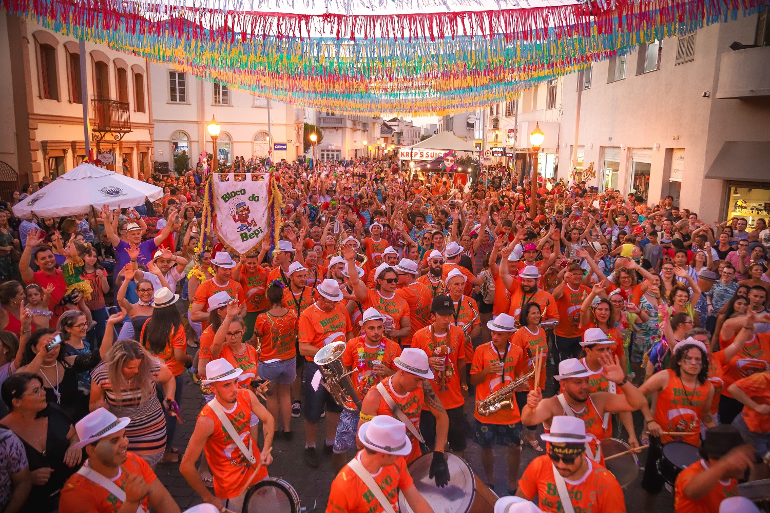 O público foi convidado a acompanhar o Bloco do Bepi, que, em movimento, tocou as tradicionais marchinhas de carnaval. O trajeto contemplou a Rua Júlio de Castilhos e a Rua Buarque de Macedo. O nome Bepi brinca com o apelido de Giuseppe em talian – dialeto que veio com os imigrantes italianos – além de lembrar a figura de Giuseppe Garibaldi, que dá nome à cidade, e de tantos Josés que fizeram história.