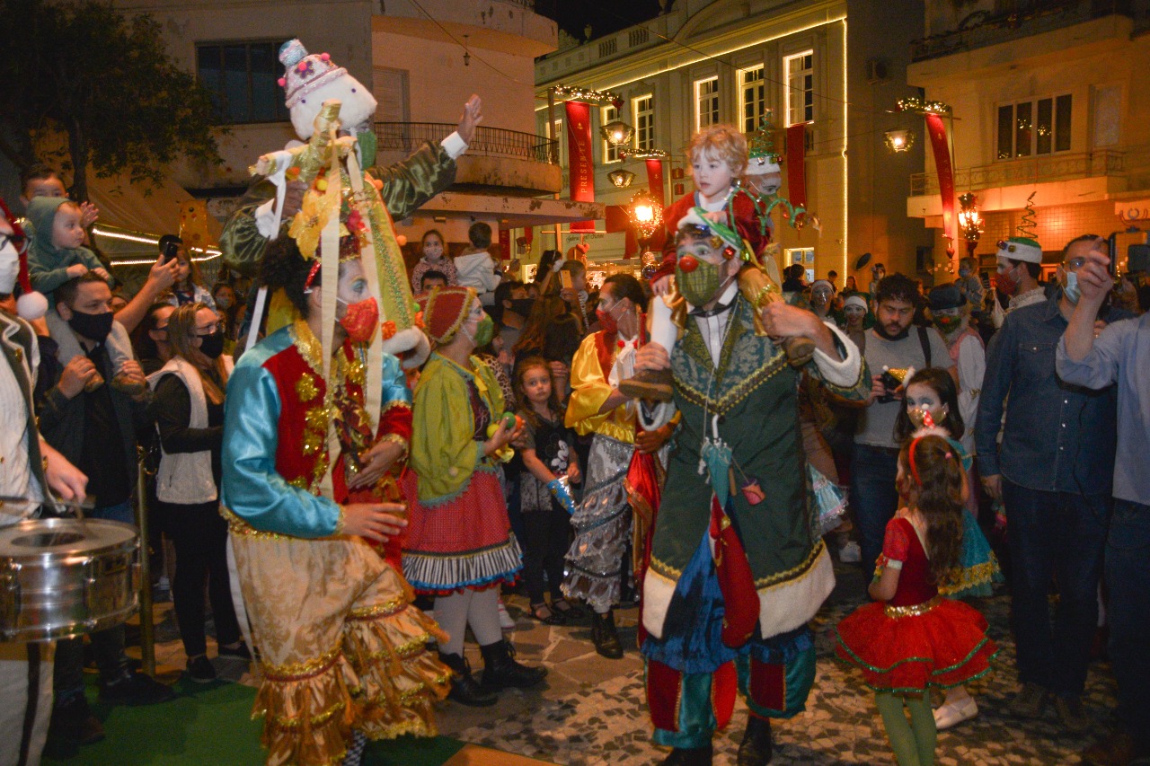 A comunidade acompanhou o Cortejo Natalino e o Papai Noel até a Vila onde está a casa do Papai Noel na Praça Loureiro da Silva.