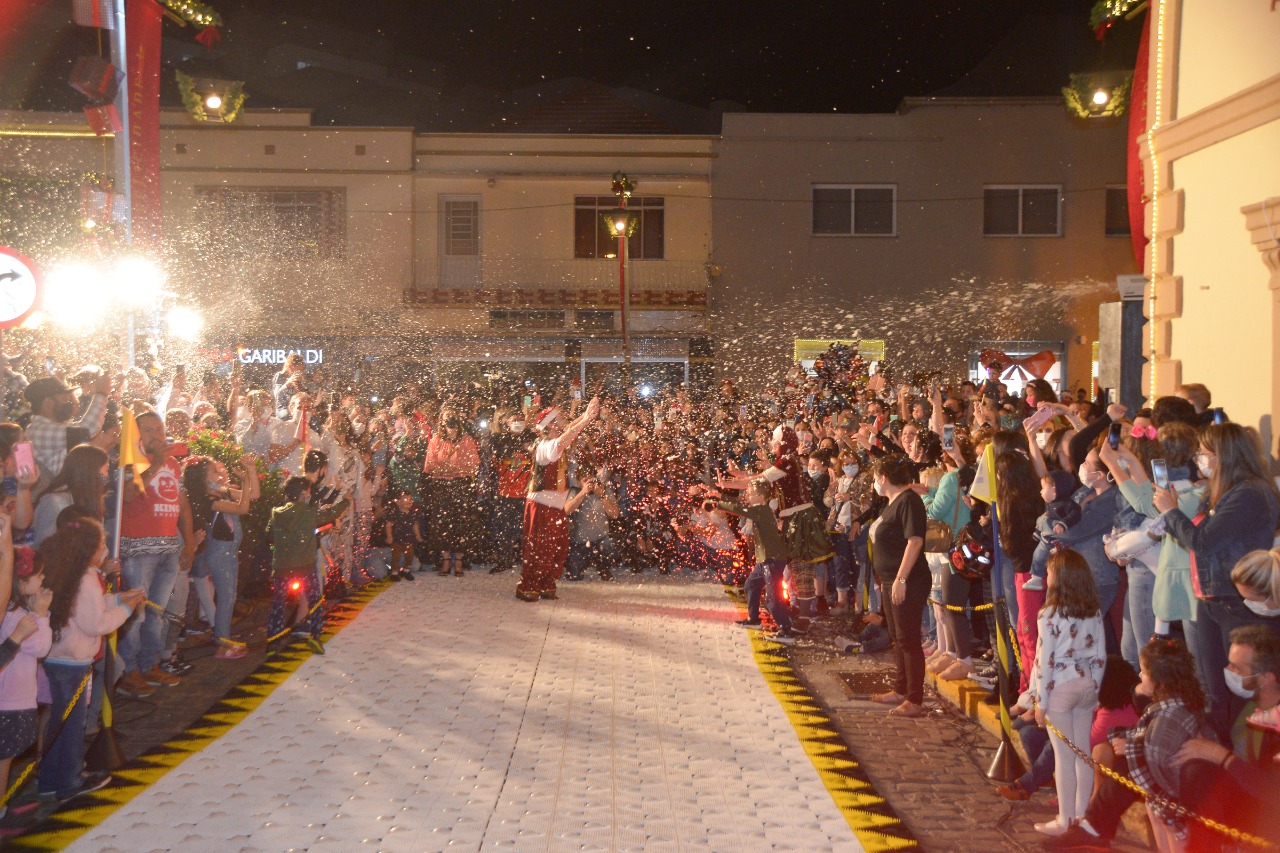 A prefeita de Garibaldi, Márcia Pedersetti recebeu o Papai Noel que chegou esquiando. “Chegar aqui de esqui é um presente para a cidade, depois de 20 anos de saudades desse esporte. Nossa comunidade merece viver o presente intensamente com saúde, alegria, no convívio da família, com fé, união e solidariedade”, destacou. Na sequência entregou a chave da cidade a quem faz a magia acontecer.