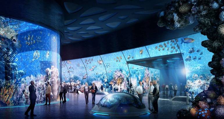 O que será o maior museu de ciências marinhas coberto do mundo contará com cerca de100 mil animais subaquáticos, incluindo peixes, mamíferos aquáticos, recifes de corais e muito mais. Ele também poderá comportar mais de 50 mil pessoas no seus quase 400 mil metros quadrados de área