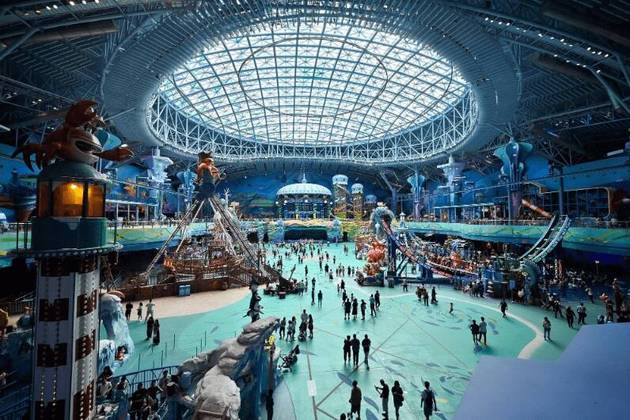 No entanto, a instalação inovadora também oferece atrações para aqueles que preferem ficar em terra firme, já que o espaço conta como maior parque temático coberto do mundo, que superaum similar em Dubai, nos Emirados Árabes Unidos