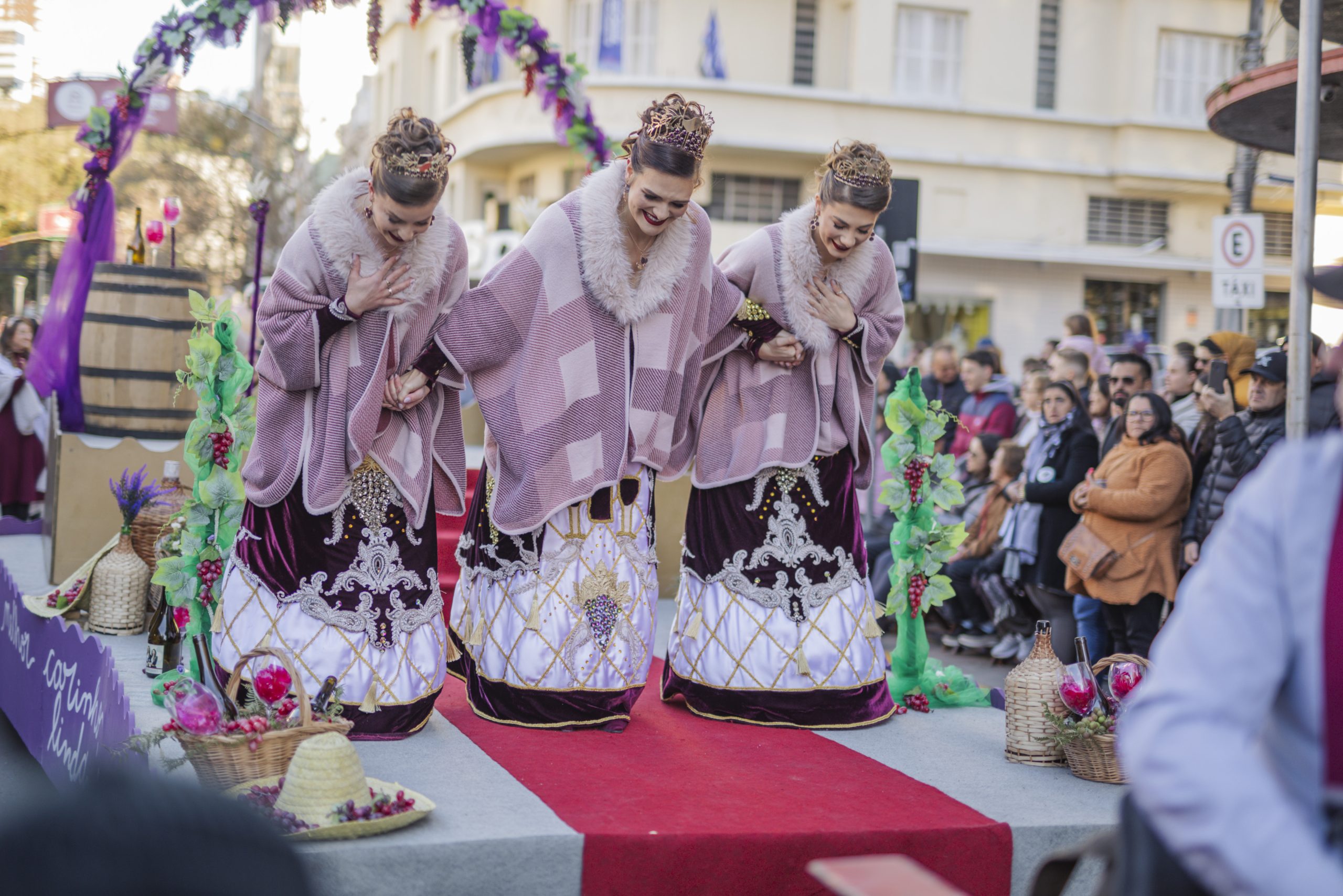 O carro do Bodegão, espaço criado na última festa para exaltar a cultura das bodegas do interior, e o carro que carrega a pipa da Fenavinho elevaram o astral do desfile e passaram entregando vinho ao público. Dando fim às homenagens, a Ala Esventolão, instrumento que carrega a marca dos antepassados e que hoje solta papel picado como forma de celebrar a vida, passou transmitindo a mensagem de que dias melhores virão.