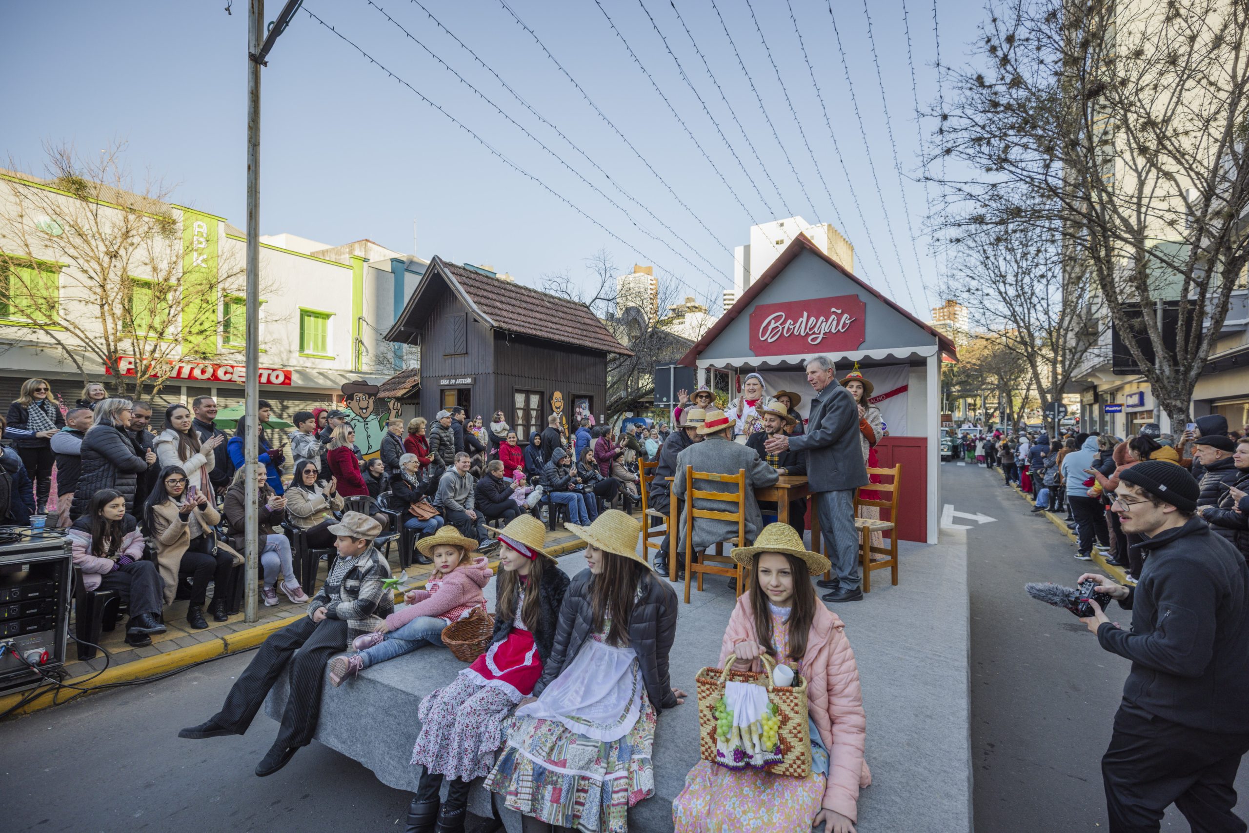 O tradicional cortejo do orgulho em ser colono das comunidades do interior, expressado no Desfile Cultural da 19ª Fenavinho, ganhou ares históricos neste ano. Junto à afamada exaltação às origens, o corso trilhou por um caminho de agradecimentos, homenagens e solidariedade, no domingo (30), quando cruzou a Via del Vino de Bento Gonçalves emocionando os espectadores espremidos à beira da Rua Marechal Deodoro.