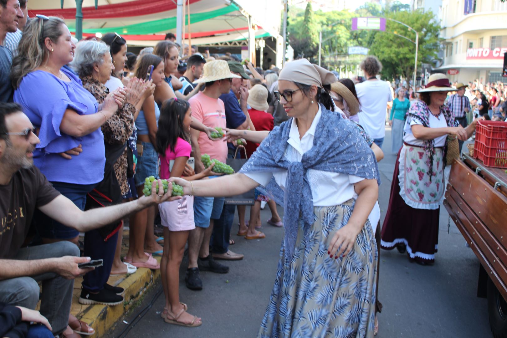 Para Juliana dos Santos, figurante pelo segundo ano, “é muito legal conhecer um pouco mais sobre a história do vinho e contribuir com a história das vinícolas da nossa cidade. E nesta cidade estou de volta para contribuir mais uma vez com Bento. A gente vivencia a história de nossos imigrantes, nossos antepassados. É gratificante para nós lembrar e comemorar essa data”.