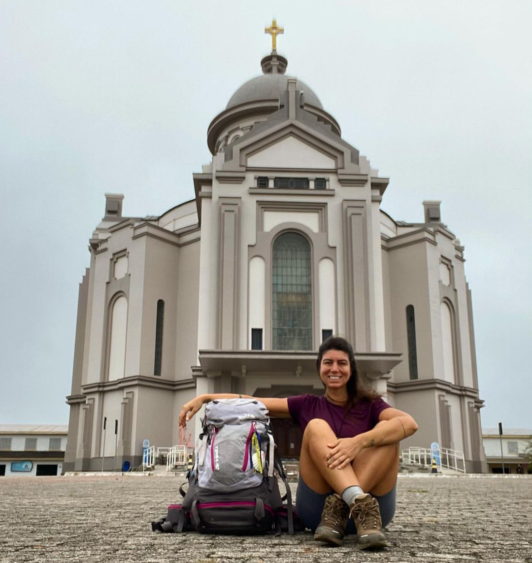 É muito bonito, de uma paz, e uma vista ainda mais compensadora. Fui muito bem recebida pelo padre Gilnei que ainda me entregou o Certificado de Peregrina. Sou vegetariana, e este estado é bastante carnívoro, nem sempre conseguia boas opções para comer sem carnes. Porém, fui muito bem alimentada por famílias italianas que me serviram excelentes massas no caminho! Gostei também de provar a Cuca e a tal da Cueca Virada!”.