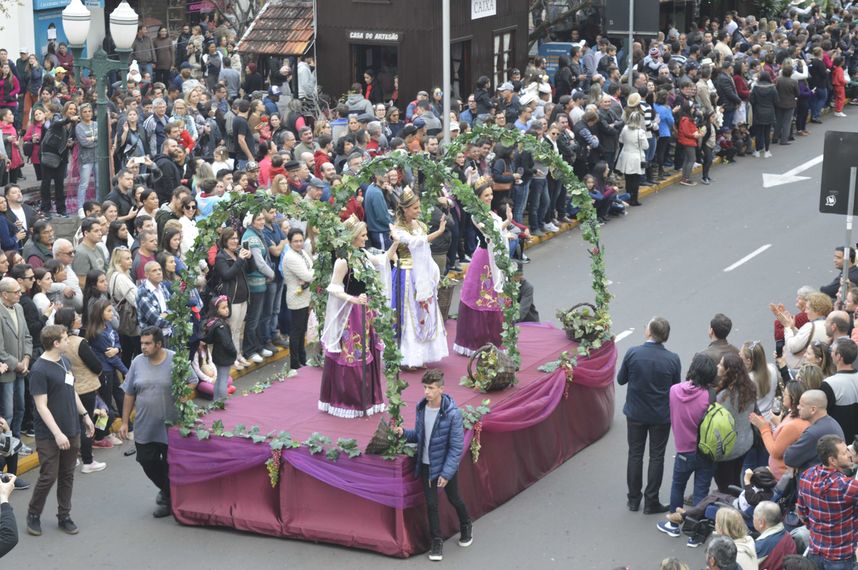 Por um trecho de 300 metros, a identidade de Bento Gonçalves foi reverenciada pelas cerca de 6 mil pessoas que acompanharam o desfile temático de carros alegóricos na tarde de domingo (02). A atividade fez parte de uma programação preparativa para o retorno da Festa Nacional do Vinho, cuja 16ª edição ocorre de 13 a 23 de junho, de forma integrada a ExpoBento 2019.