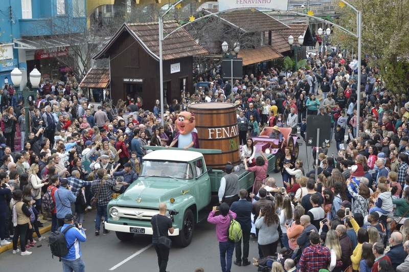 Com tantos fatos a comemorar, a Fenavinho estenderá o brinde aos visitantes oferecendo-lhe uma programação de atrativos que inicia ainda em maio. O Vinho Encanado, uma de suas atrações mais icônicas, ganha as ruas do centro de Bento Gonçalves em três fins de semana. Desta vez, o vinho que sai em torneiras reunirá os amigos de Baco nos dias 16, 17, 23, 24, 30 e 31 de maio, na Via del Vino, acompanhando de atrações gastronômicas e artísticas em praça pública. Outra atração confirmada para o próximo ano é a realização do Desfile Alegórico – e também com um incremento: serão duas apresentações, nos dias 17 e 31 de maio. Nessas ocasiões, as comunidades do interior ganham a via central por onde Bento Gonçalves se desenvolveu, na Rua Marechal Deodoro. Hábitos, costumes e tradições dos imigrantes italianos vêm à tona, num desfile de orgulho das origens e da alegria de pertencimento a uma cultura.