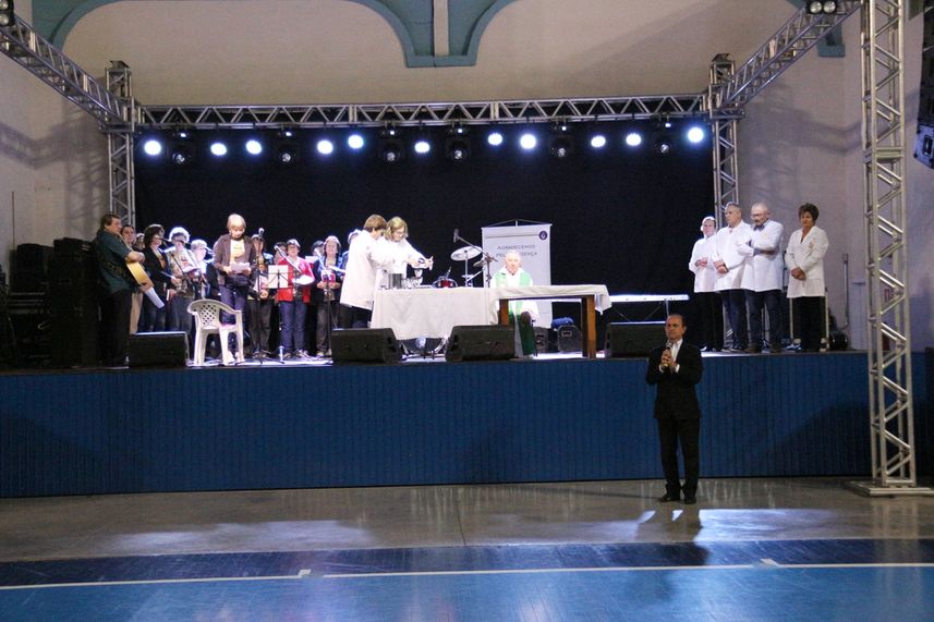 Uma festa foi oferecida a toda a população no Ginásio Municipal de Esportes, contando com a presença de cerca de 400 pessoas, que acompanharam celebração religiosa, distribuição de bolo e apresentação do Vocal Allegro.