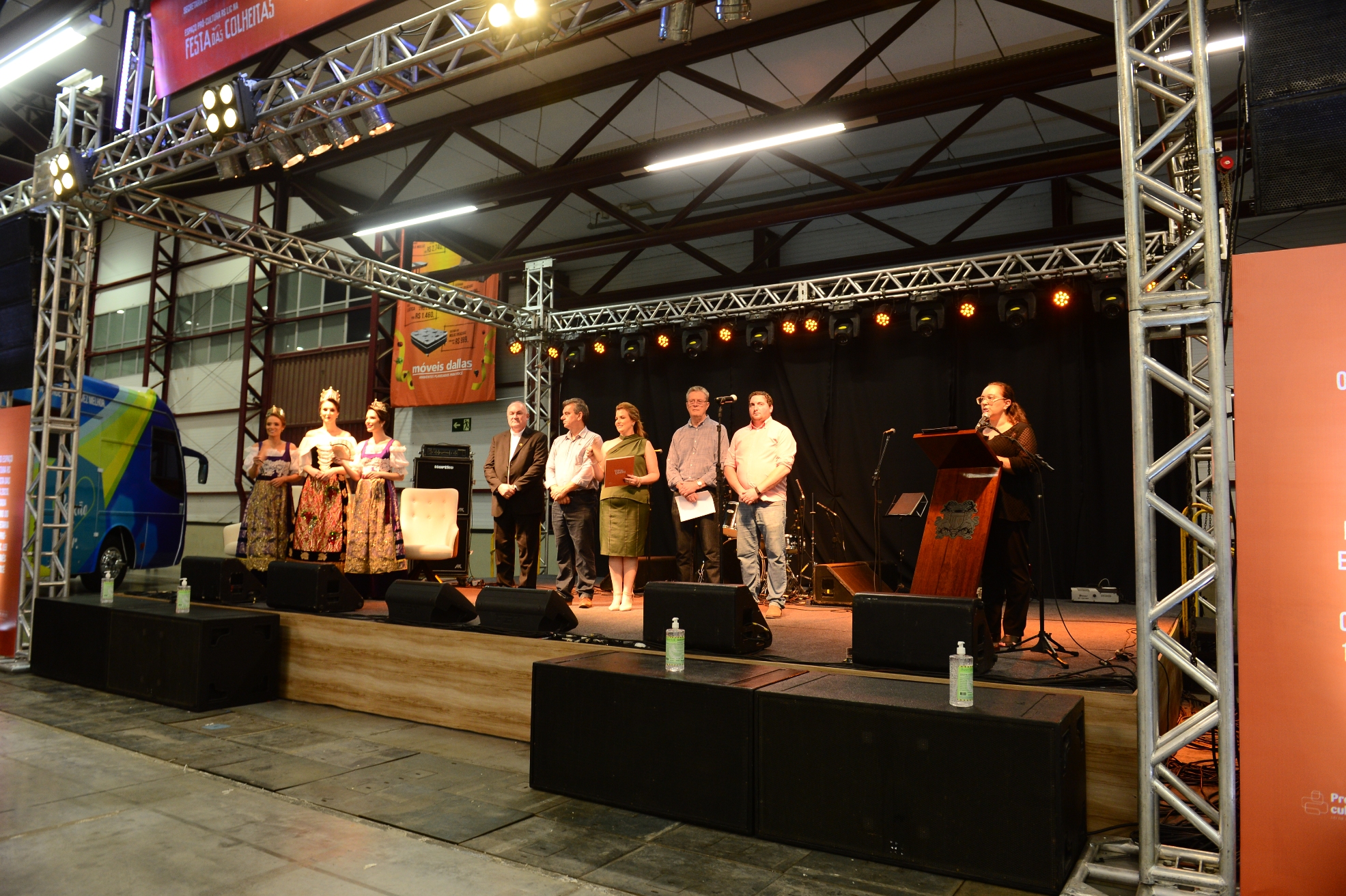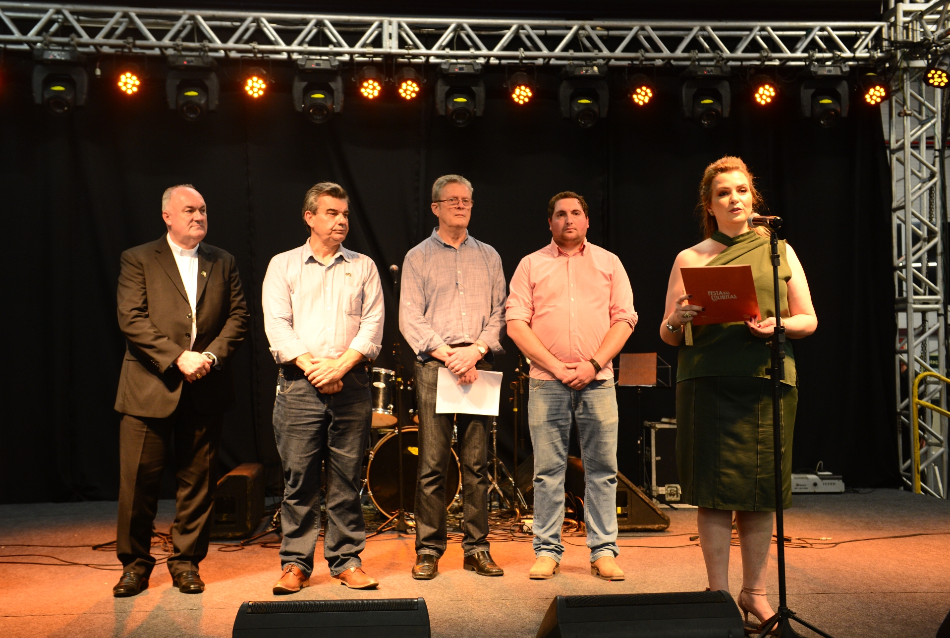 A solenidade de abertura da Festa das Colheitas aconteceu na noite de sexta-feira (13) no Centro de Eventos do Parque da Festa da Uva e contou com a presença de toda administração municipal acompanhada pelos deputados estaduais Neri, O Carteiro (representando a Assembleia) e Pepe Vargas, pelo presidente da Câmara Municipal, Ricardo Daneluz e demais vereadores, presidente do Conselho Consultivo da Comissão da Festa da Uva 2021 e presidente da CIC, Ivanir Gasparin, pelo bispo diocesano, Dom José Gislon, pela Rainha da Festa da Uva, Maiara Perottoni e as princesas Milena Remus Caregnato e Viviane Piamolini Gaelzer e rainhas e princesas de outras edições da festa, prefeitos da região, membros da Amesne, integrantes da Comissão Comunitária e Social da Festa da Uva, candidatas a Rainha e Princesas e Embaixatrizes de festas passadas, patrocinadores, apoiadores e expositores da Festa.