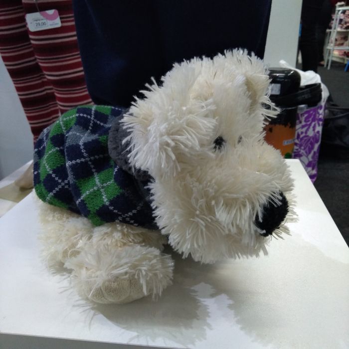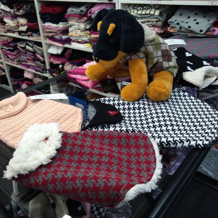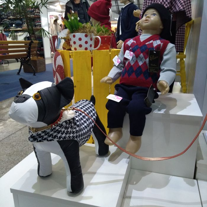Gatos e cachorros podem circular pela feira no colo de seus donos. Para os animais de estimação, a diversidade de malhas também é um diferencial da feira. São cores, modelos, texturas e tamanhos para todas as personalidades de animais, que podem provar as peças no próprio estande.