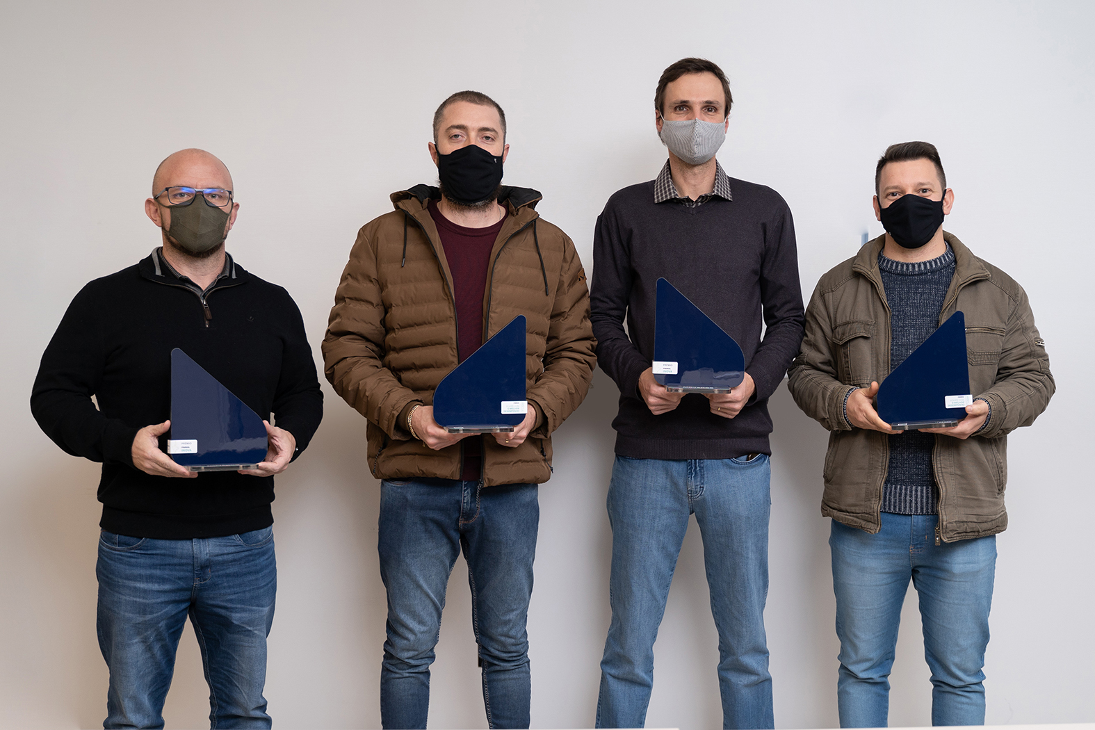 Inova Ação (1º lugar): Daniel Ângelo Zanotto, Edinei Mussatto, Fernando Cardoso Vieira, Marlo Tremarin, Rafael Lagunaz, Tiago Deolindo da Silva. Case trabalhado: Treboll Móveis.