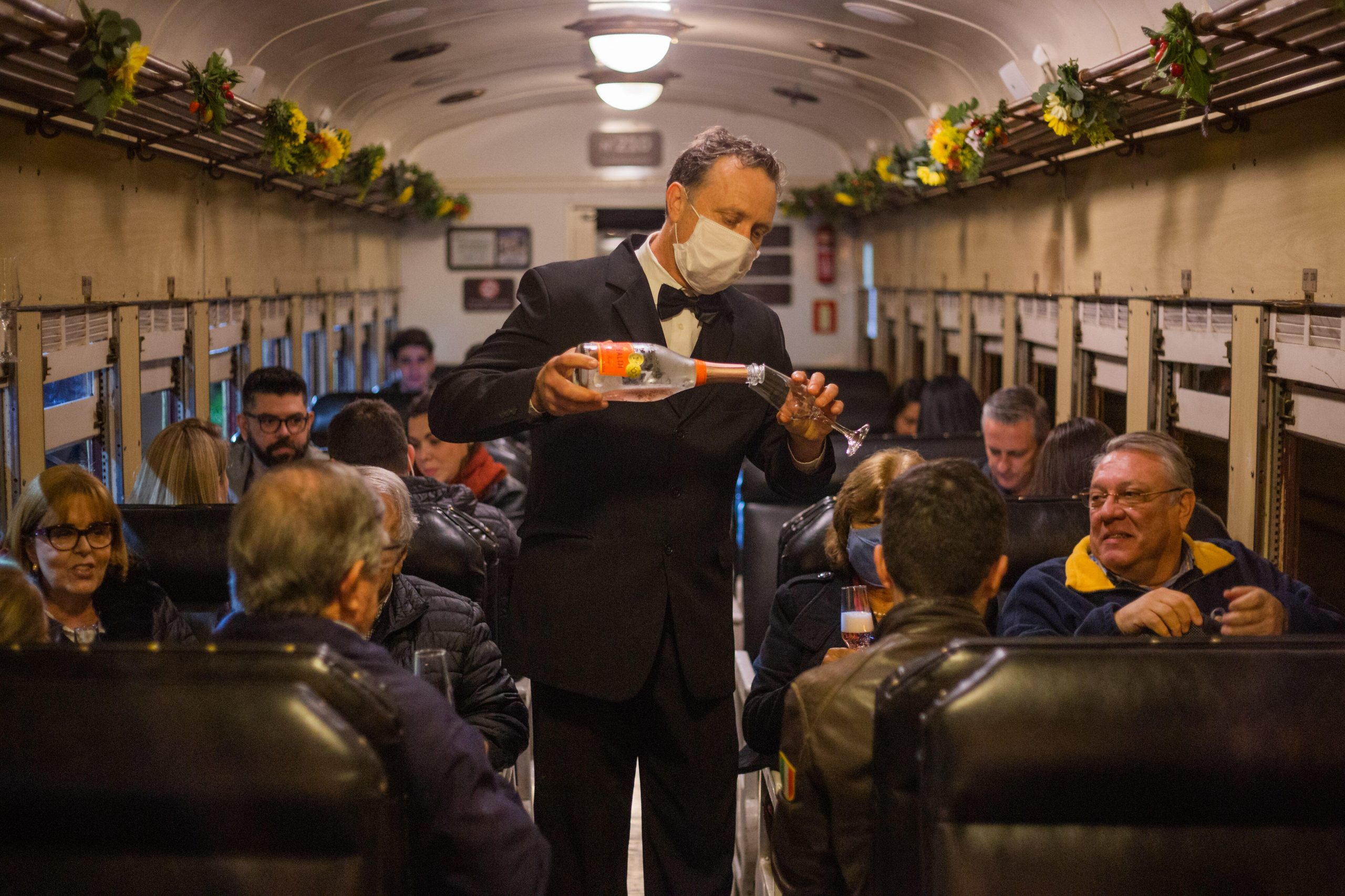 Ela foi chegando de mansinho com seu apito inconfundível. Logo, a fumaça confessou que era a Maria Fumaça chegando na Estação Férrea de Garibaldi. Na plataforma, 150 pessoas aguardavam ansiosas a chegada do ‘Trem do Vinho’ para embarcar em uma grande experiência enogastronômica no interior de sete vagões com um menu assinado por diversos chefs.