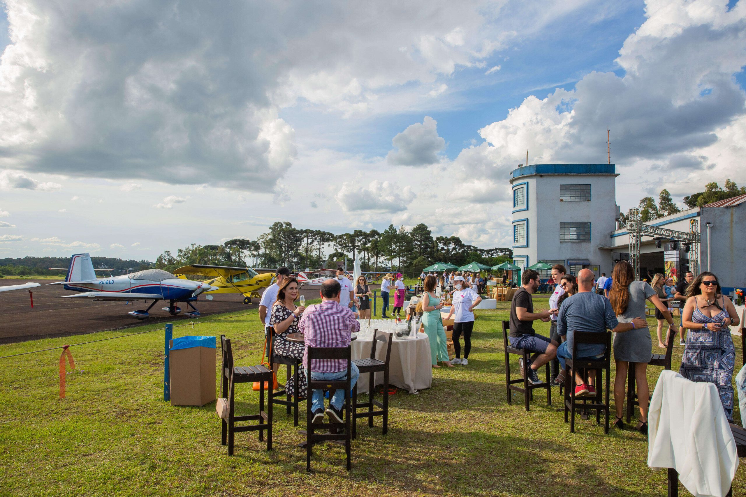 O Garibaldi Gastrô Aeroclube, realizado no sábado, 30 de outubro, decolou e já projeta novo embarque para 2022. O céu estava lindo. O clima perfeito. Mesas com flores, ombrelones, pufes e almofadas transformaram o jardim do Aeroclube de Garibaldi, que ganhou, ainda, a presença de estações gastronômicas e ilhas de espumantes e cerveja, além do embalo de música ao vivo com artistas locais. Na pista, aviões que subiam e desciam sobrevoando a pequena e charmosa Garibaldi, na Serra Gaúcha, uma aventura a parte para os mais corajosos. Para brindar o evento, que passa a fazer parte do calendário da Capital Brasileira do Espumante, um pôr do sol espetacular que já deixa saudade.