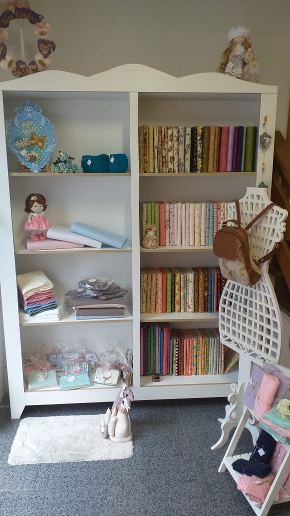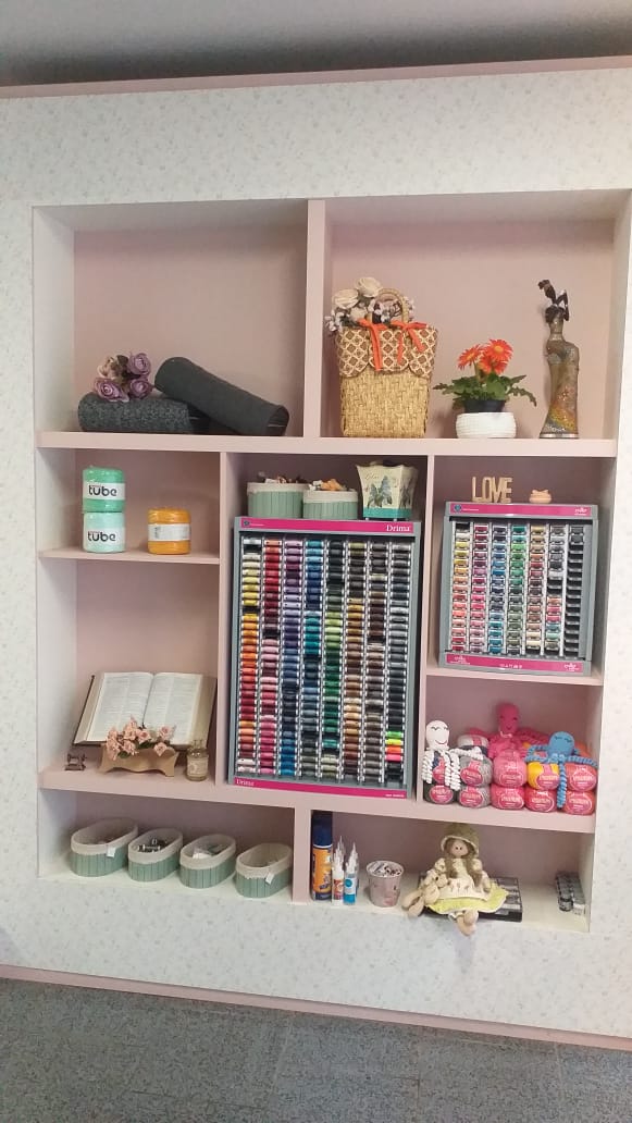 Ainda na loja são vendidos produtos para seu artesanato,como: tecidos, feltros e aviamentos, linhas, tintas, mdf e resina, produtos prontos para presente e decoração.