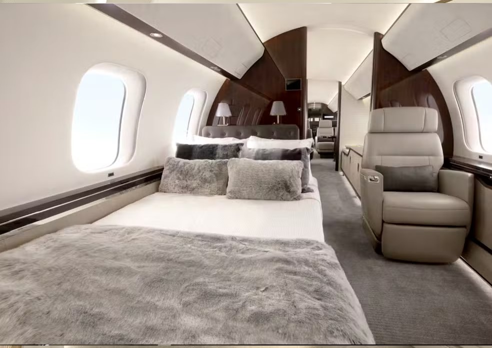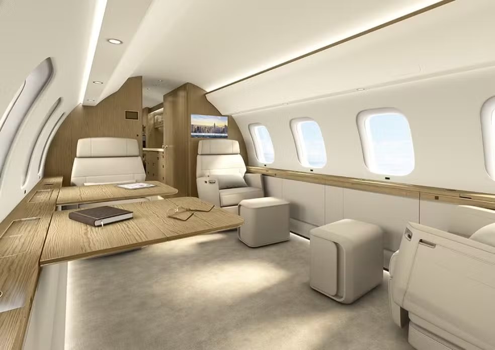 Não há detalhes sobre o interior do avião usado por Beyoncé na viagem ao Brasil, mas a fabricante Bombardier destaca em seu site as janelas amplas e o grande espaço no interior da aeronave. Segundo a empresa, a ideia é proporcionar um ambiente mais iluminado e confortável para reuniões dentro do avião.