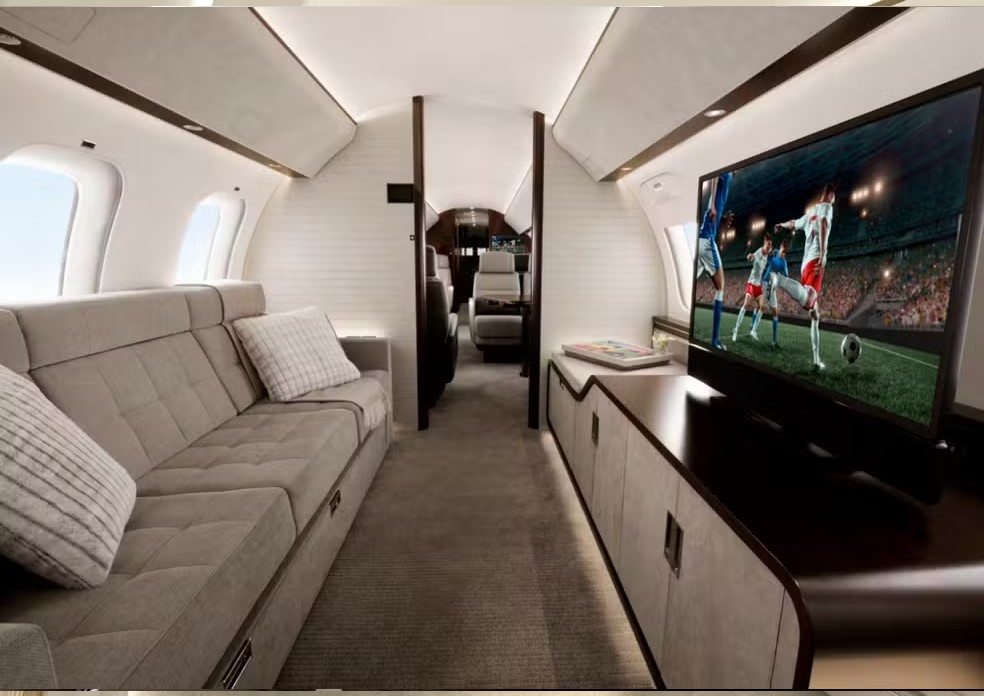 Imagem de divulgação do Bombardier Global 7500, modelo usado na viagem de Beyoncé ao Brasil — Foto: Divulgação/BombardierO modelo de luxo conta ainda uma tecnologia própria da Bombardier que permite controlar melhor a altura e a inclinação das poltronas mais confortáveis. Os donos podem optar por uma sala de estar, onde é possível ter um sofá de três lugares e uma TV de 55 polegadas integrada com um sistema de áudio com um sistema de áudio criado pela fabricante do avião.