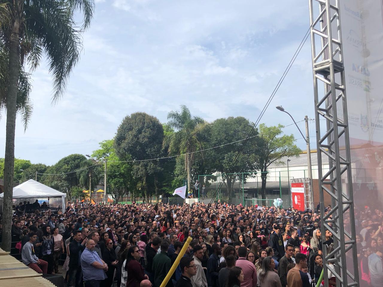 A banda da Associação de Ministros Evangélicos de Bento Gonçalves (Asmeb) abriu o festival, trazendo hits como “Ousado Amor”. Em seguida, Thayna Lane colocou a plateia para cantar com sucessos conhecidos, como “Alfa e Ômega”.