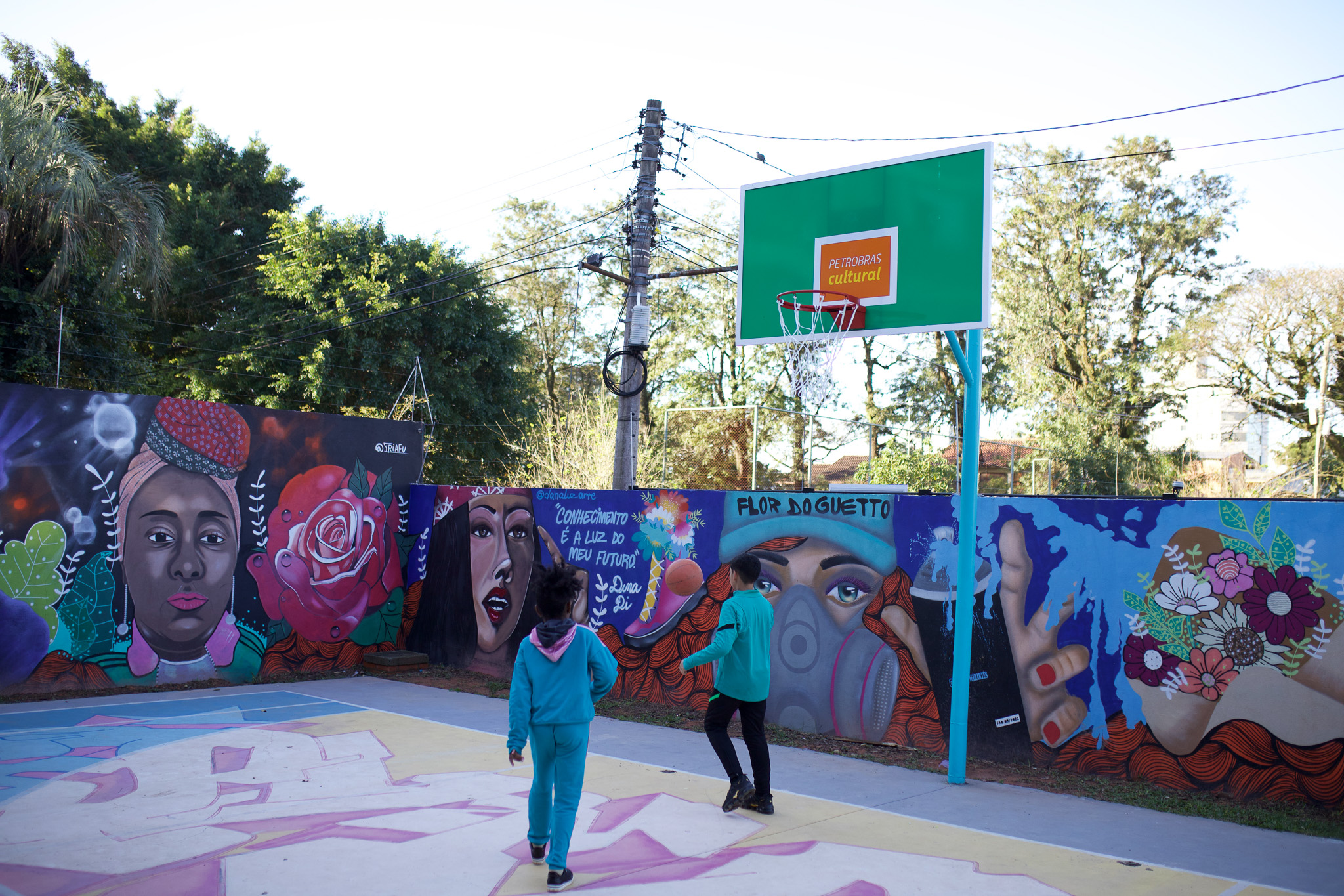 Assinada pela artista Gugie, a Quadra Petrobras, localizada na área externa do Museu da Cultura Hip Hop RS, é uma verdadeira obra de arte. Com a curadoria de Tio Trampo, Guigie convidou nove grafiteiros locais para auxiliarem na pintura que compõem a quadra em si e também os muros ao seu redor.