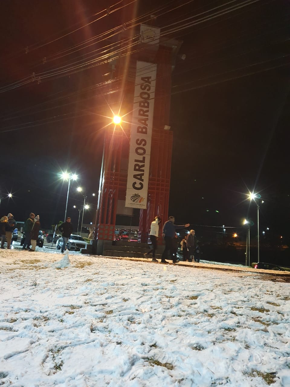 Foi registrada nesta quarta-feira (28) queda de neve em Gramado, Canela, Arvorezinha, Pelotas, São Francisco de Paula, Carlos Barbosa, Bagé, Herval, Piratini, Caxias do Sul, Marau e Farroupilha.
