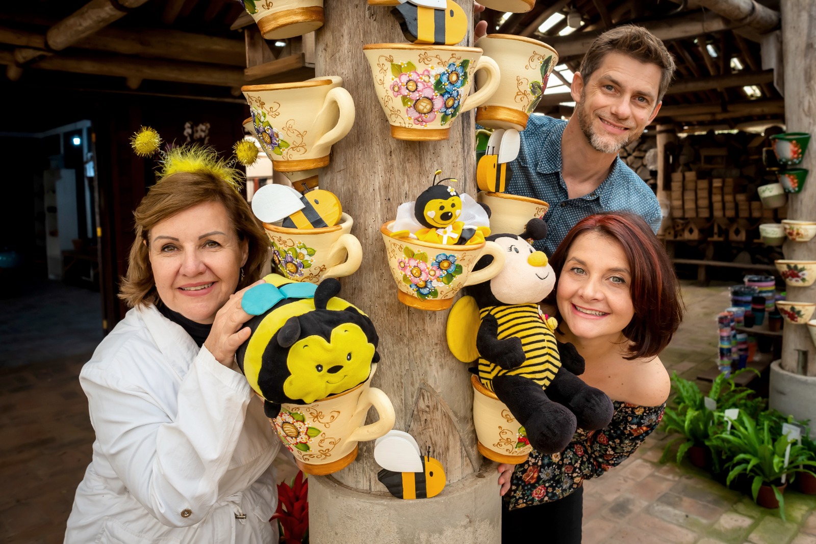 Além da sessão de autógrafos, o lançamento também terá contação de história com a atriz Cassi Boff, que dá vida a uma Belinha estilizada que vai interagir com a criançada. O figurino, composto por saia, colete e asinhas em preto e amarelo, é assinado pela estilista Eliana Zardo. Na ocasião, também será apresentado um aparelho lúdico inspirado nas ilustrações do livro e no trabalho dos apicultores. São quatro casinhas coloridas, enfeitadas de flores e vegetais, nas quais as crianças experimentam com dedoches o processo de polinização. A instalação artística, criada por Gio e Doug, conta com mediação do ator Gabriel Zeni de Oliveira.