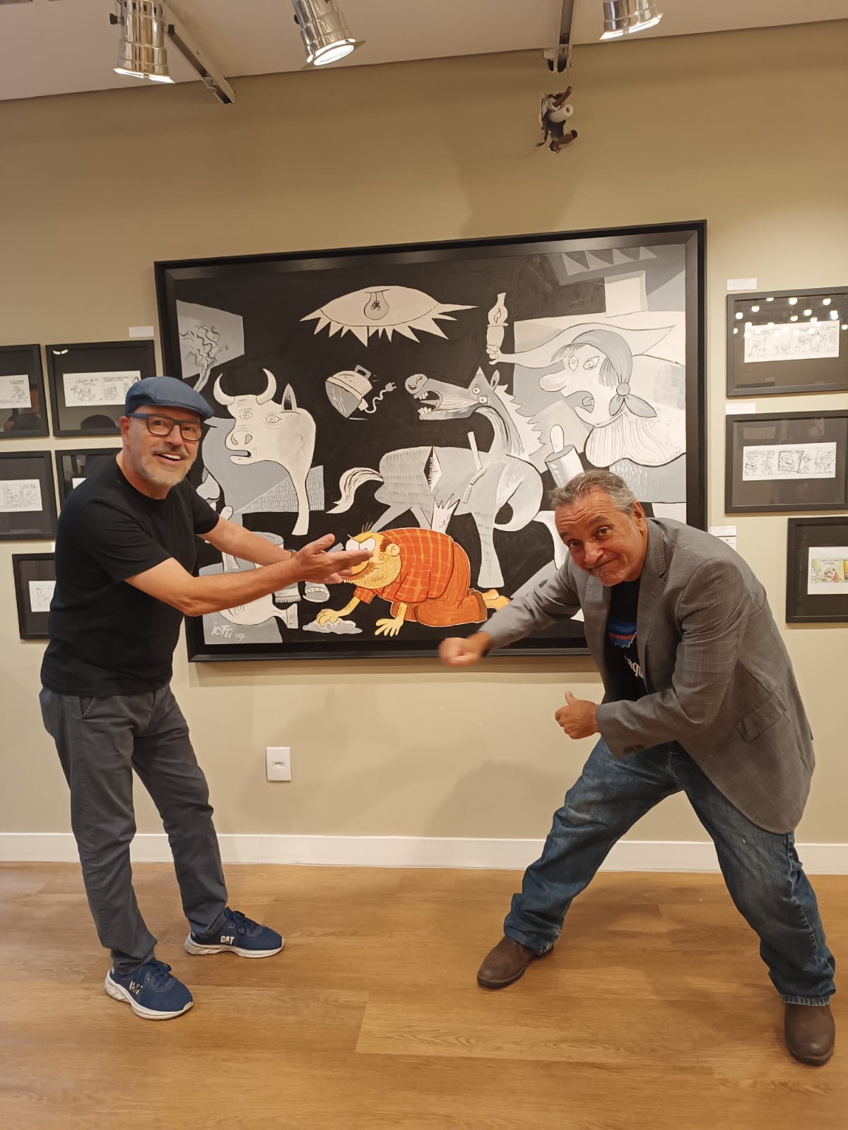 Entre as atrações da exposição e de inúmeras tirinhas ou as telas como a da Rural Willys até a tela com releitura da obra Guernica, de Picasso, em que Radicci aparece limpando o chão sob o olhar de uma ameaçadora/facista Genoveva. É humor refinado, imperdível.