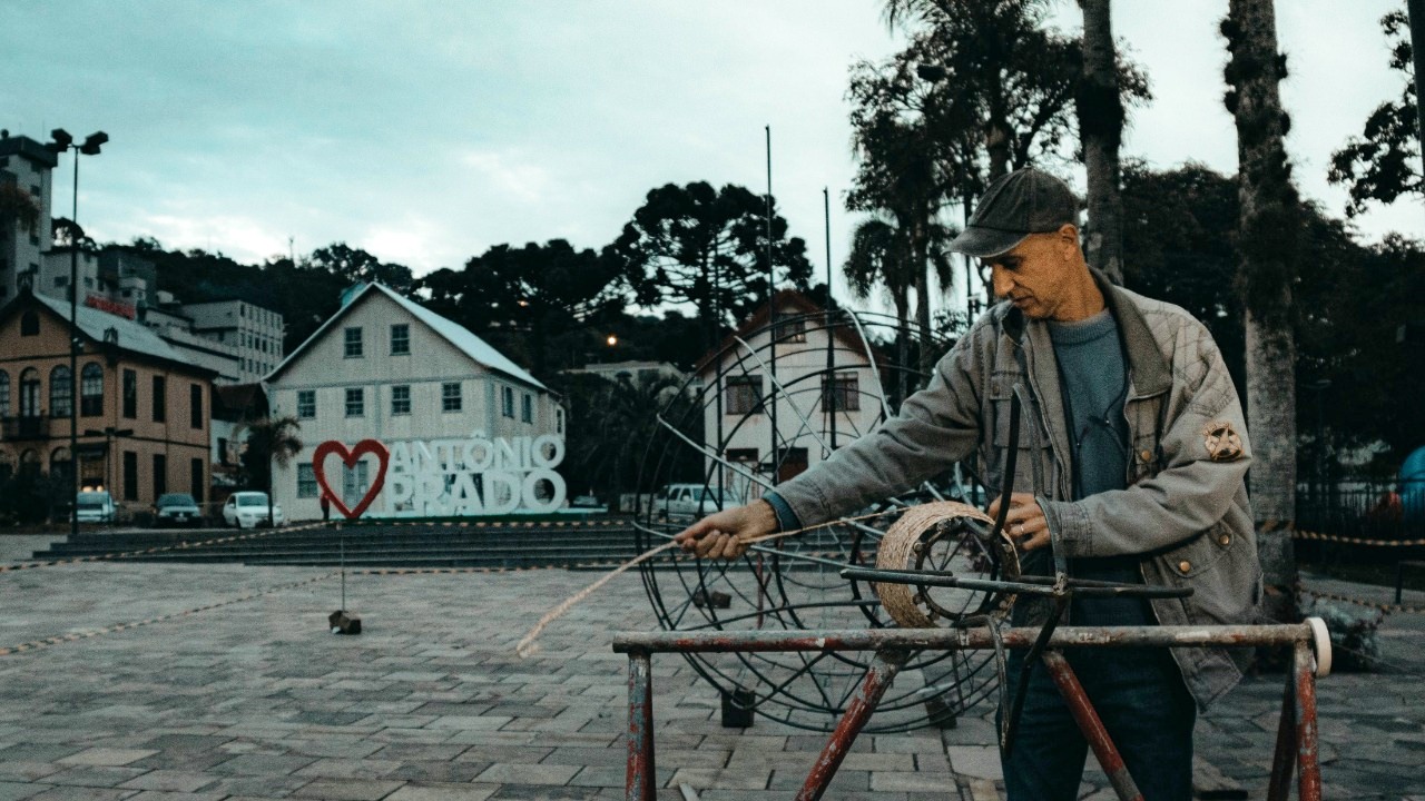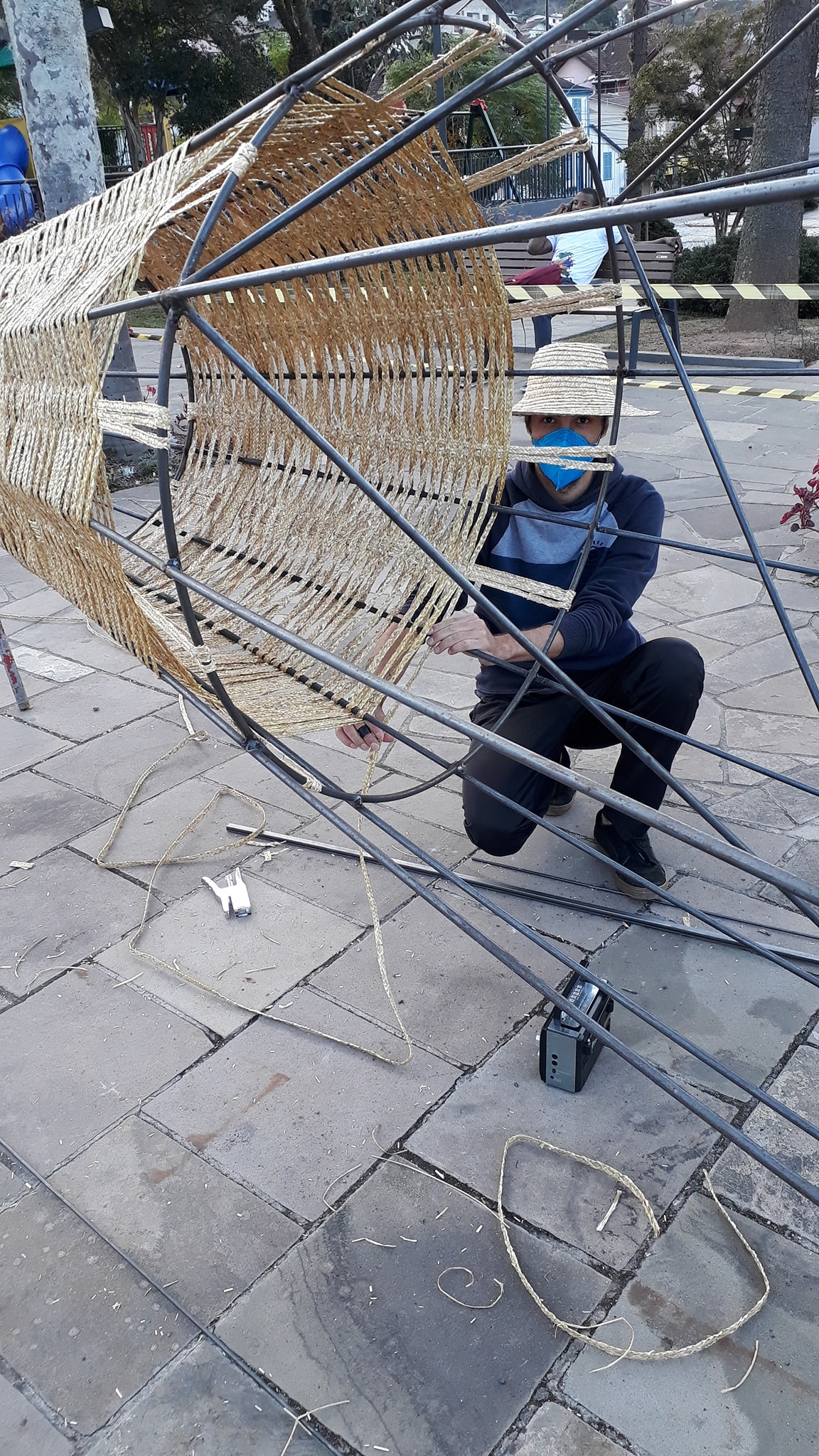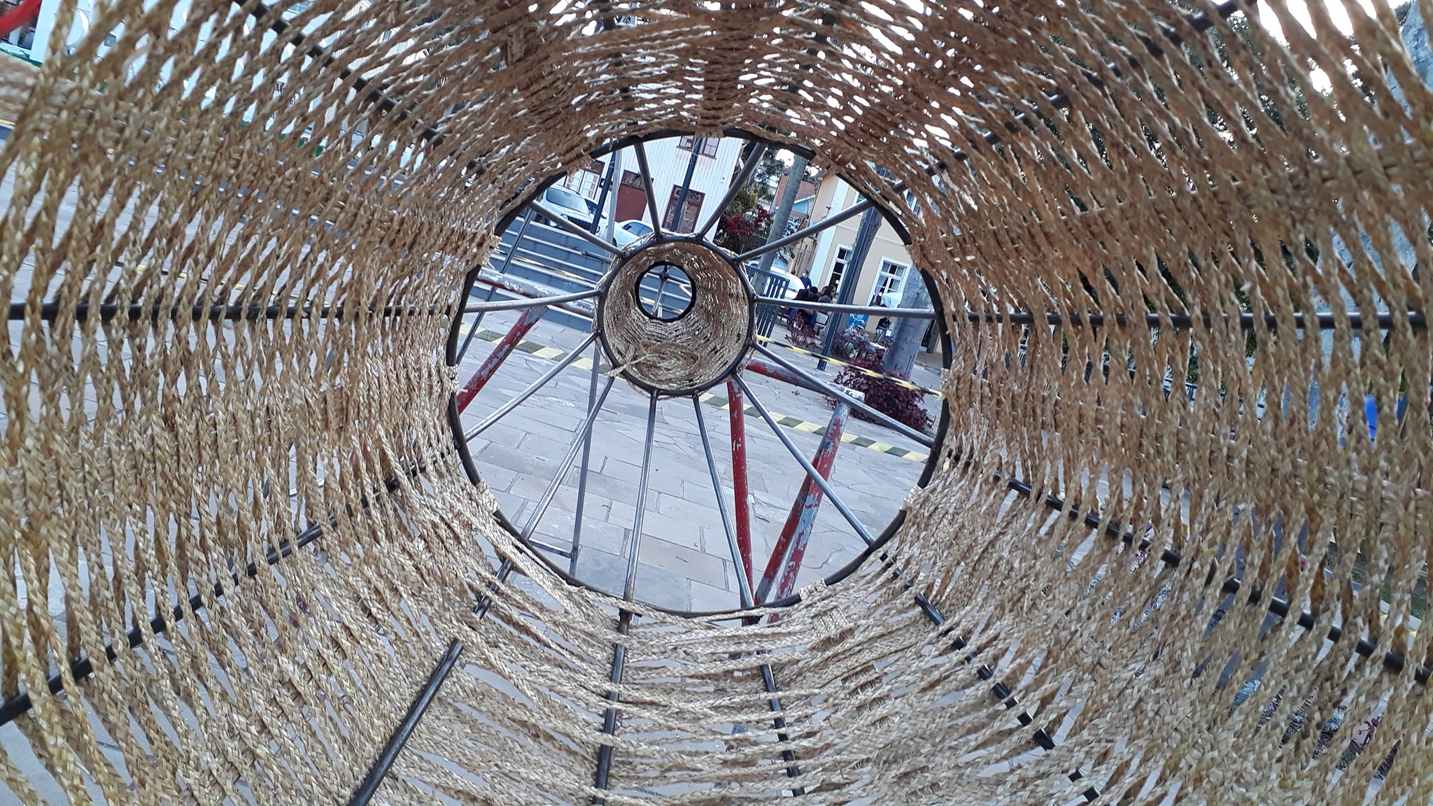 Uma escultura móbile de grandes dimensões (12m de comprimento por 3m de altura) em ferro e dressas de palha de trigo está sendo montada na Praça Garibaldi, em Antônio Prado, pelo artista plástico César Cony.