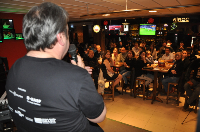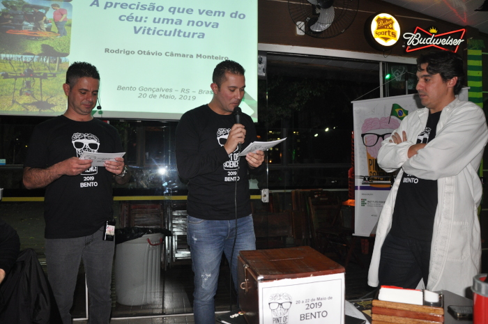 Durante as três noites, Rodrigo Monteiro e Fábio Ribeiro, analistas da Embrapa Uva e Vinho, foram os anfitriões e conduziram o evento de forma descontraída e muito animada, contagiando a todos os participantes a brindarem à ciência. O músico Antônio Lugon, que veio diretamente de Lages (SC) como convidado especial, também conquistou o público ao longo das noites do evento, participando das brincadeiras e também tocando e cantando sucessos que fizeram a diferença no festival de Bento Gonçalves.