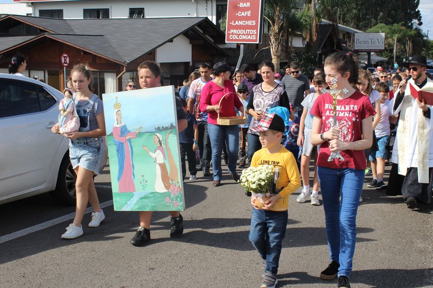 À tarde, por volta das 14h, crianças se reuniram no início da Avenida Dom José Barea, próximo ao Santuário, acompanhada dos pais. Eram crianças ligadas a grupos de catequese e da comunidade de Farroupilha, que seguiram acompanhadas por Caravaggio em procissão conduzida pelo padre Jocimar Romio. Além da procissão, as crianças receberam fitinhas de Caravaggio para amarrar no Mirante das Graças, agradecendo e pedindo pela saúde de suas famílias. Houve ainda momento de oração no Recanto do Rosário, jardim situado atrás do Santuário. A tarde seguiu com teatro e outras brincadeiras.