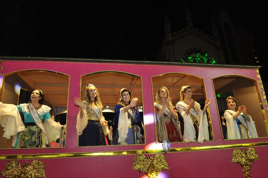 O último carro alegórico trouxe o Vagão Imperial com a presença da Rainha da Festa da Uva 2019, Maiara Perottoni, e princesas Milena Remus Caregnato e Viviane Piamolini Gaelzer e das embaixatrizes, que encerraram a noite do primeiro desfile da Festa da Uva de 2019.