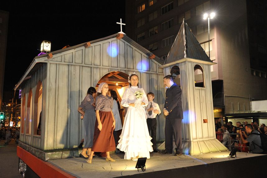 Os demais carros alegóricos mostraram aos expectadores o Trem, essencial para o desenvolvimento da cidade, a gastronomia que ilustrou os pratos típicos da cultura italiana. A religiosidade também foi representada com a tradicional capela, presente nas comunidades do interior do município, e nos trajes dos figurantes.
