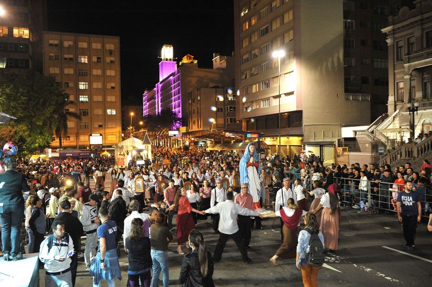 De acordo com a Brigada Militar, o primeiro Desfile Cênico da Festa da Uva 2019 levou cerca de 15 mil expectadores até a Praça Dante Aliguieri, na noite de terça-feira (26).