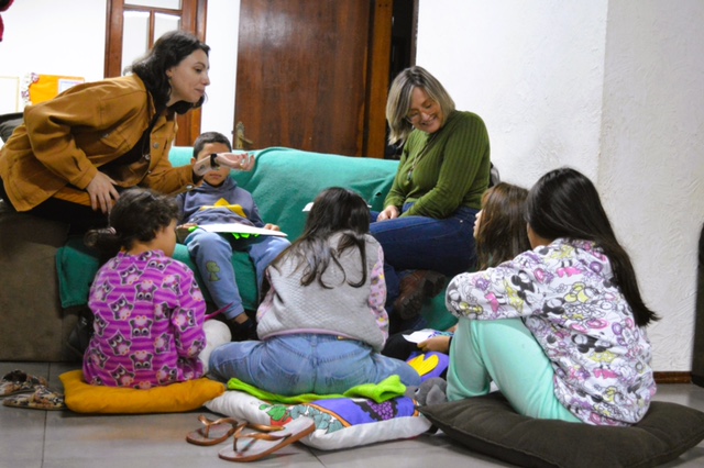 Ao lado da arteterapeuta Priscila Weber, ela espalhou afeto em 10 oficinas realizadas em casas de acolhimento de Caxias do Sul entre os meses de março e julho deste ano. “Além de ouvirem as histórias e conhecerem novos personagens, as crianças tiveram a oportunidade de trabalhar com pintura e colagem. Essas atividades fazem parte do processo terapêutico que ajuda a identificar sentimentos internos e encontrar formas de lidar com eles”, explica Priscila.