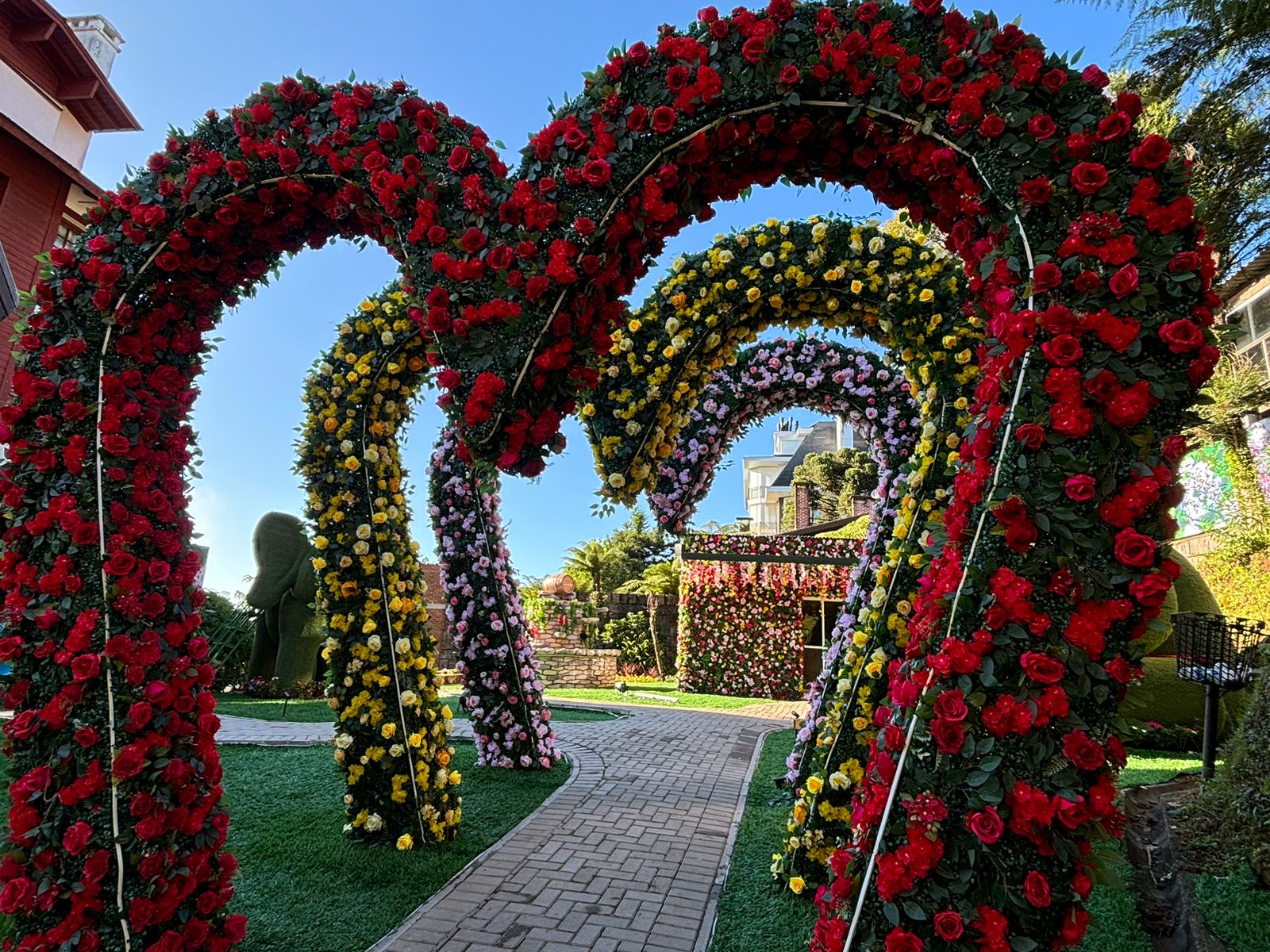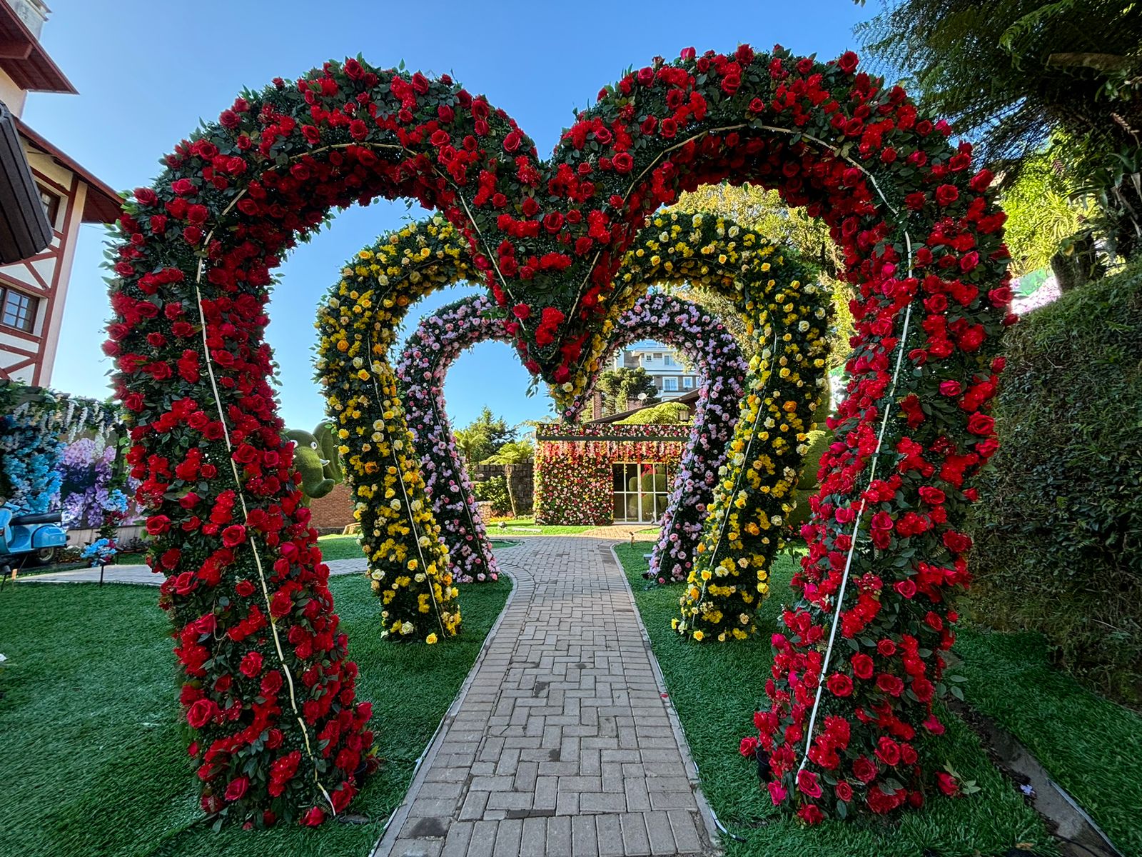 O Hortênsias Garden é um convite à imersão em um mundo mágico e único em Gramado. Ao chegar pela Rua Torta, o visitante é recebido por imponentes corações revestidos de flores, baldes gigantes transbordando flores e espaços que evocam o universo dos contos de fadas.