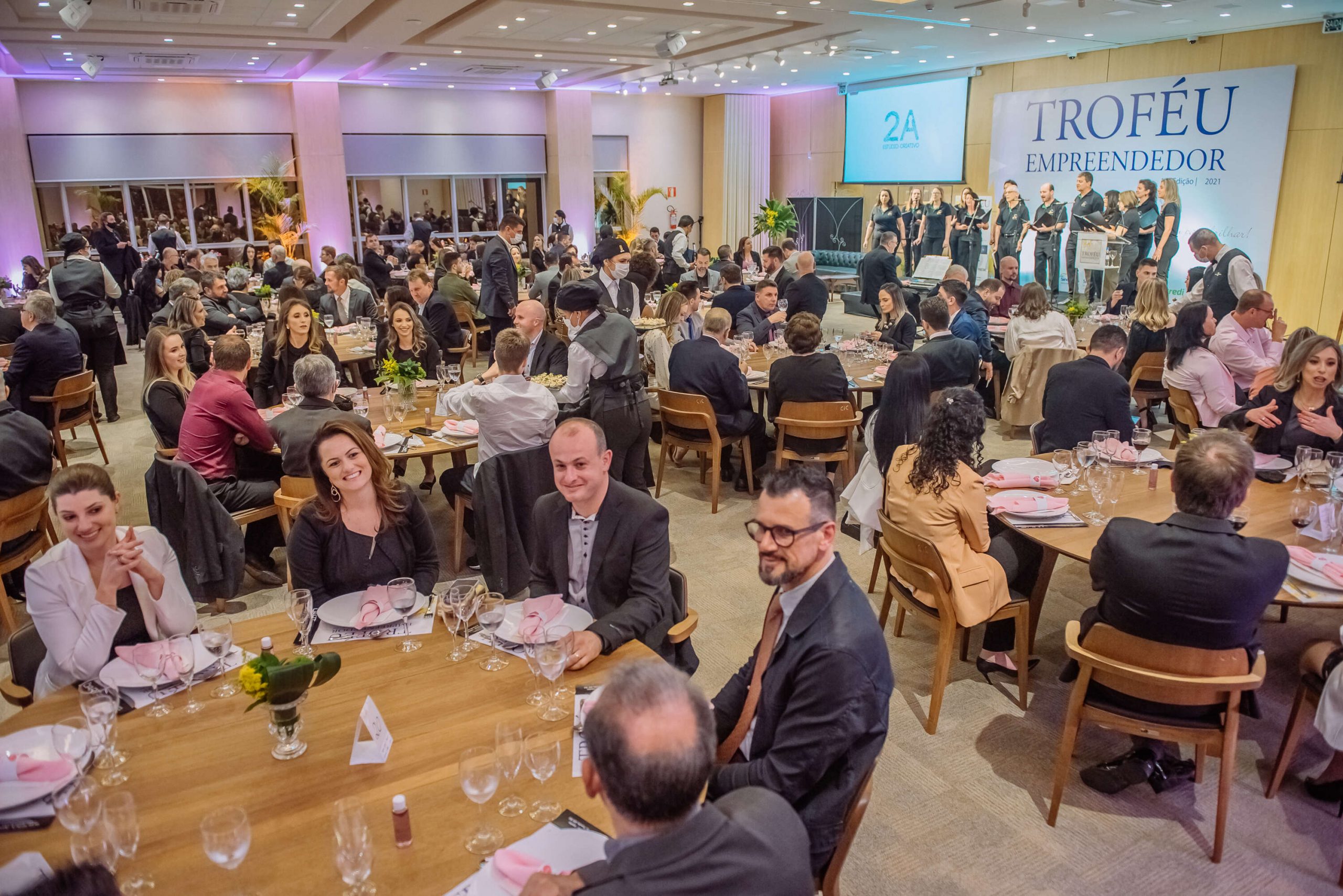 Dezesseis empresas da Indústria, Comércio e Serviços de 10 cidades da Serra Gaúcha foram reconhecidas com o Troféu Empreendedor Jovem 2021. Organizado pelo Sindilojas Jovem de Bento Gonçalves e com o apoio do Sindilojas, o encontro reuniu mais de 120 pessoas no Centro Empresarial de Bento Gonçalves numa noite de reconhecimento à trajetória dessas marcas e seus líderes. O evento, realizado dia 21 de outubro, contou com o prestígio de diversos prefeitos e lideranças regionais, seguindo todas os protocolos de segurança, inclusive a apresentação do comprovante de vacinação.