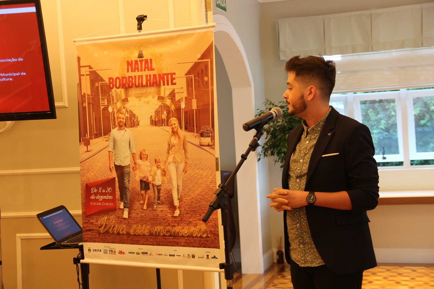 Representando a agência Engenho de Ideias, Leonardo Batista apresentou o conceito das peças para esta edição. A representação da Buarque de Macedo em 3D, os tons dourados e a frase “Viva esse momento” buscam reforçar a identidade da tradição do evento ao mesmo tempo em que acentuam a evolução do Natal Borbulhante.